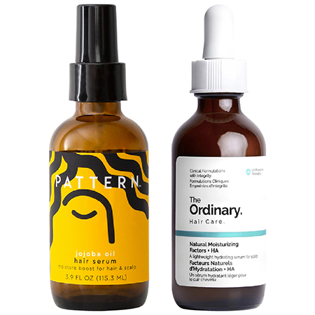 PATTERN Jojoba Oil Hair Serum, $25: A lightweight cocktail of six oils – safflower, jojoba, rosehip, olive, and lavender – that are quickly absorbed by low-porosity hair types to buffer against breakage.